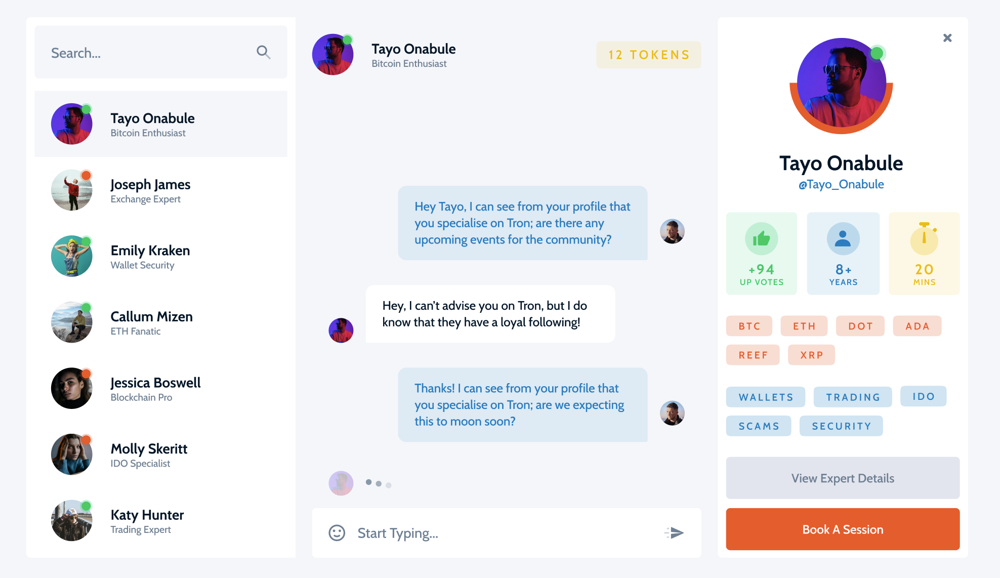 I then designed the UI components, dashboard systems, advisor profiles, chat interactions, and token-based micro-transactions. The goal was to make a complex decentralised structure feel simple, safe, and human — while still giving power users full transparency and control.