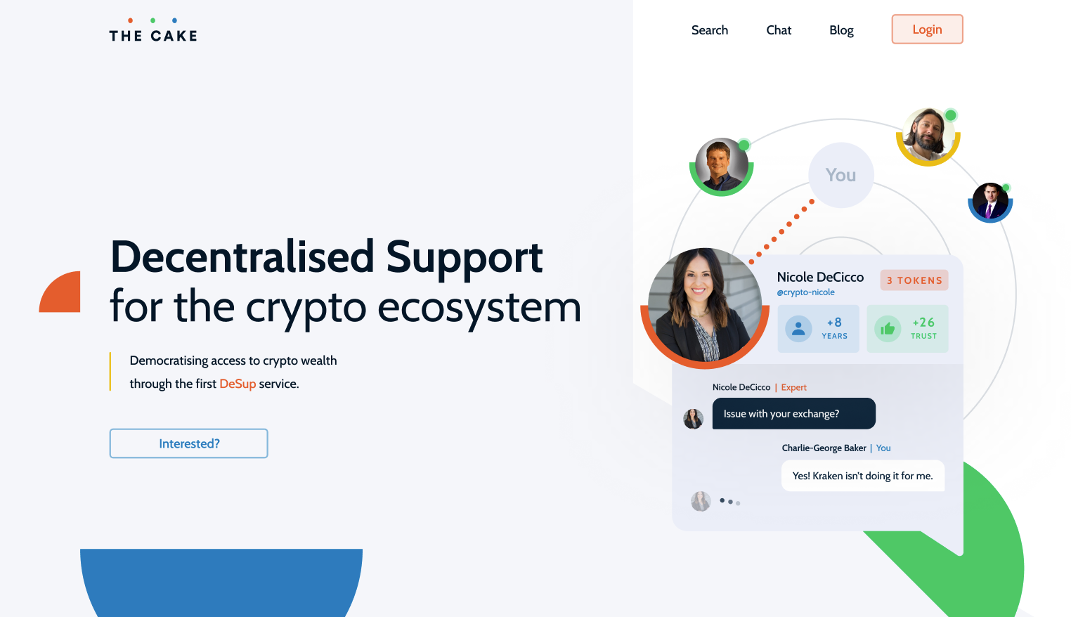 I built The Cake from scratch as a decentralised support marketplace for the crypto ecosystem. Starting from a blank canvas, I ran a complete discovery cycle, mapped user types (first-timers, emerging markets, builders, active traders), and framed a model where incentives, trust, and governance align through a DAO and its native DESUP token.