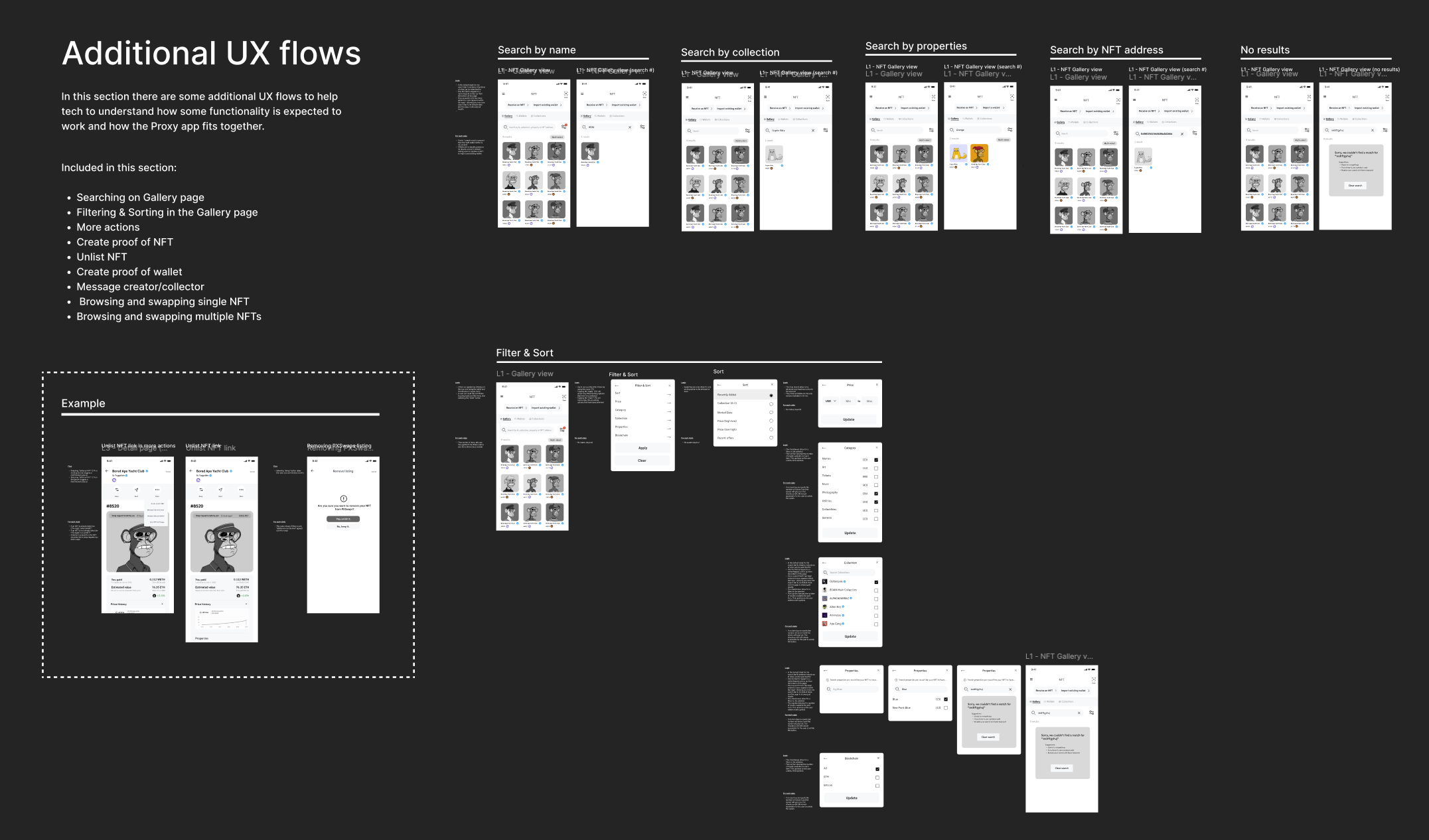To support the design team, I produced a fully annotated flow library (NFTs, creds, vault, onboarding) that documented every logic branch, state change, and failure mode. This became the backbone for UI and engineering, ensuring everyone understood how the product actually worked.